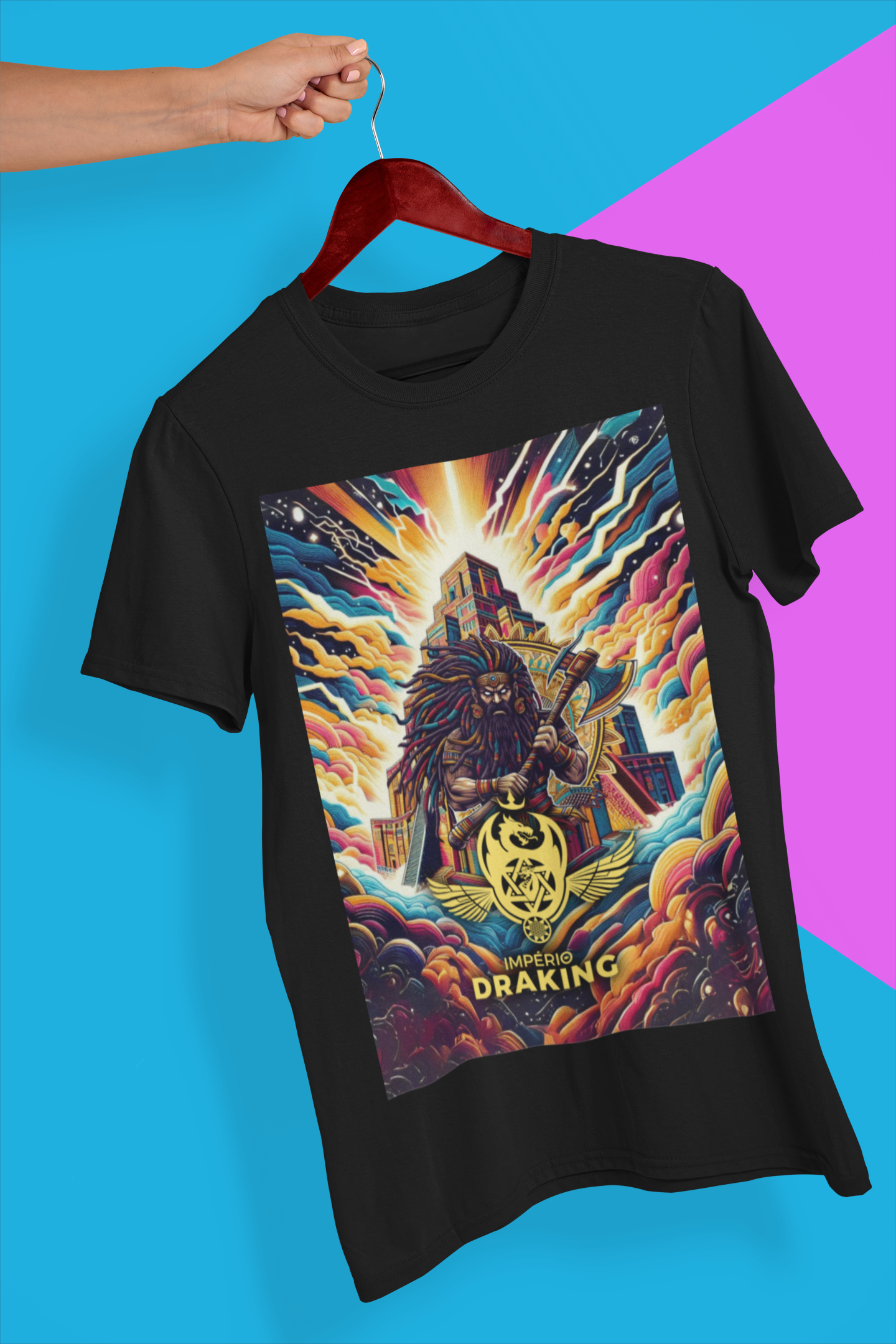 A estampa desta camiseta traz uma interpretação única da mitologia mesopotâmica, mostrando Marduk com um machado sobre a Torre de Babel, conectando você a uma das histórias mais profundas da civilização antiga. A imagem ousada e expressiva faz um tributo à força e ao legado dos Anunnaki.