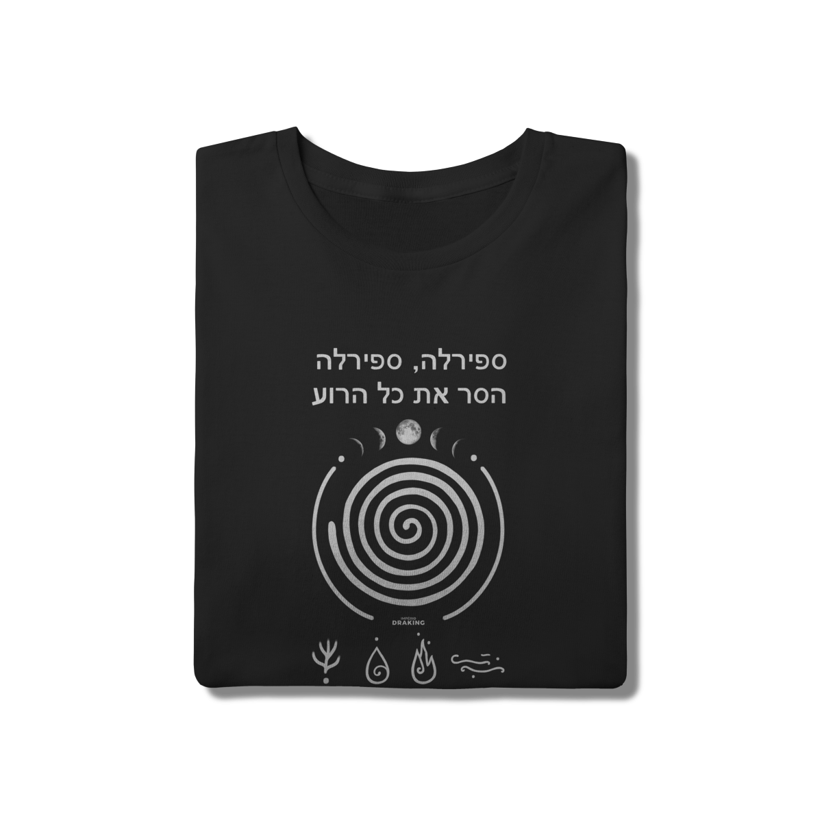 A inscrição sagrada em hebraico declara “Espiral, espiral, leve todo o mal.”