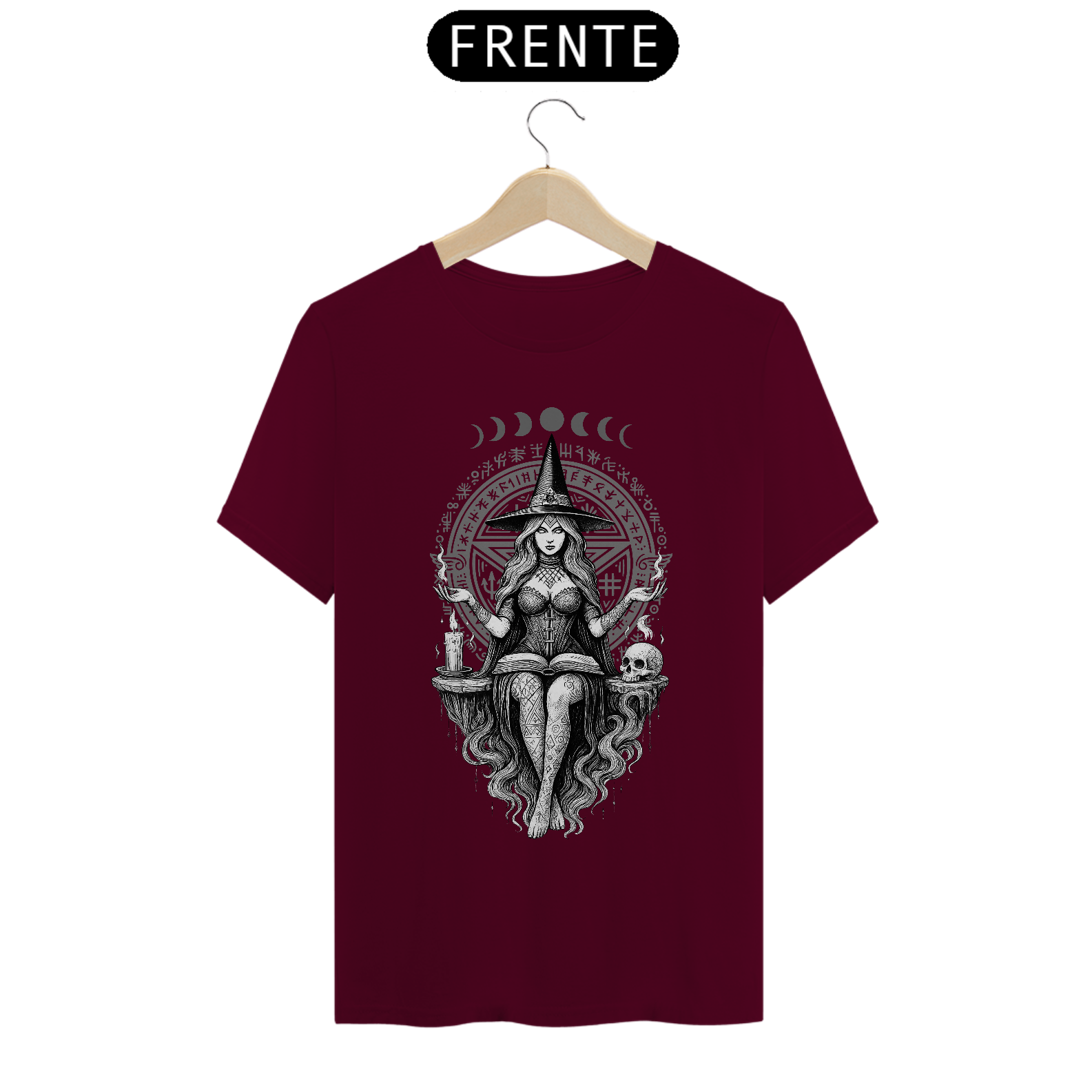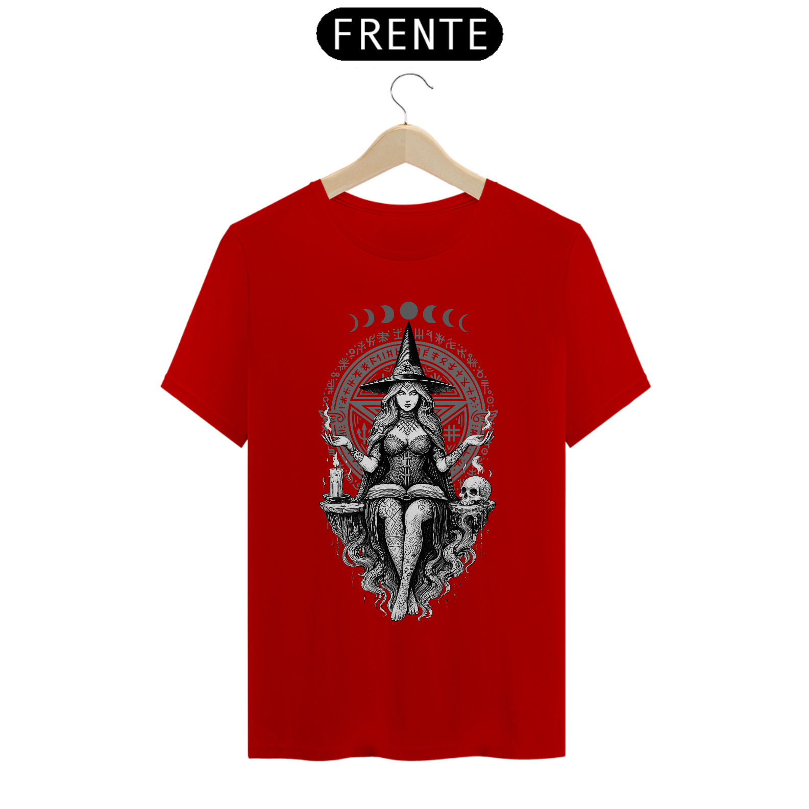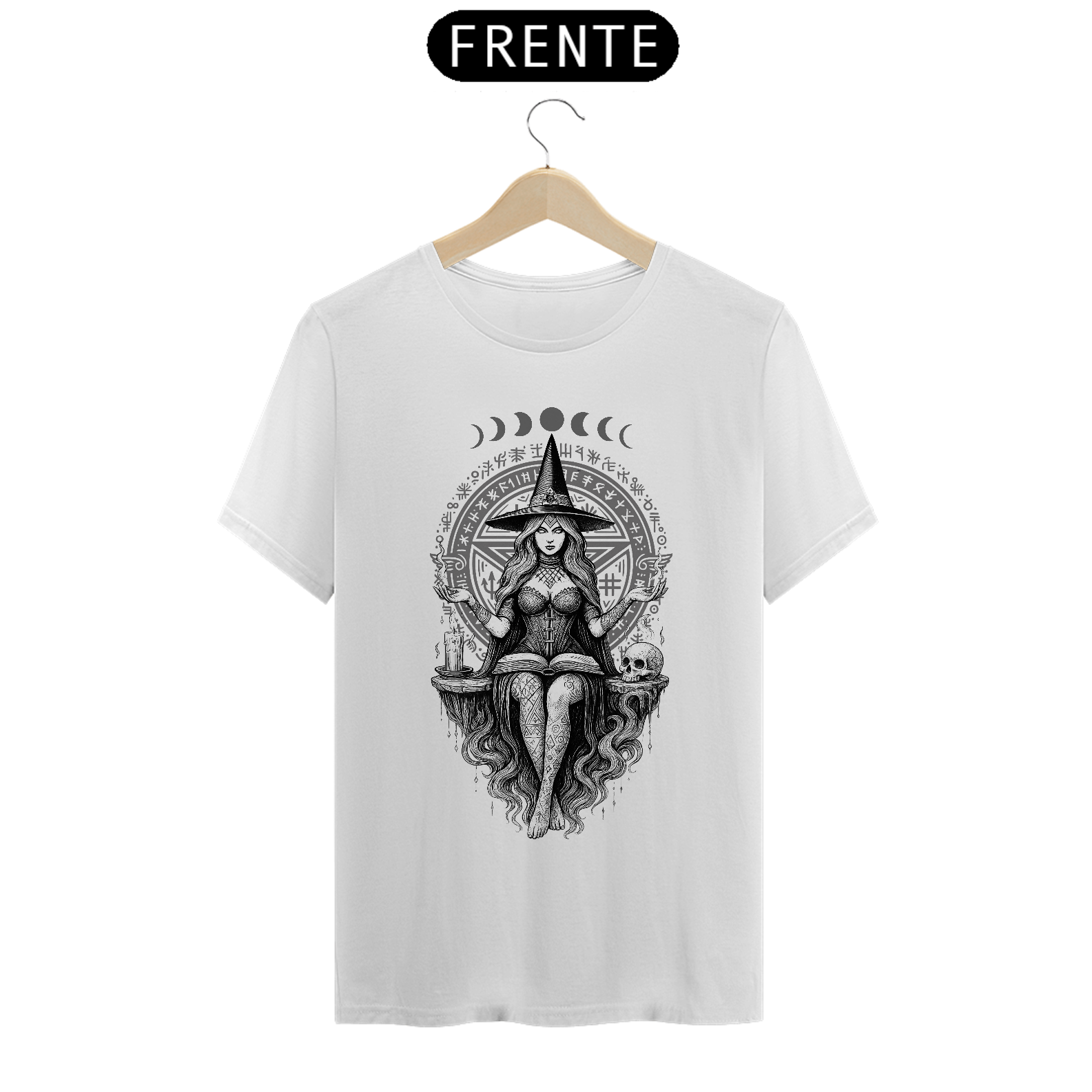 Vista-se com a força de quem carrega os segredos do fogo e da noite. A camiseta Guardiã Arcana é uma peça ritualística que exalta a imagem ancestral da bruxa como protetora dos mistérios esquecidos. Sua estampa invoca a presença feminina que domina os elementos, os véus e os grimórios, mantendo viva a sabedoria oculta nas sombras da criação.