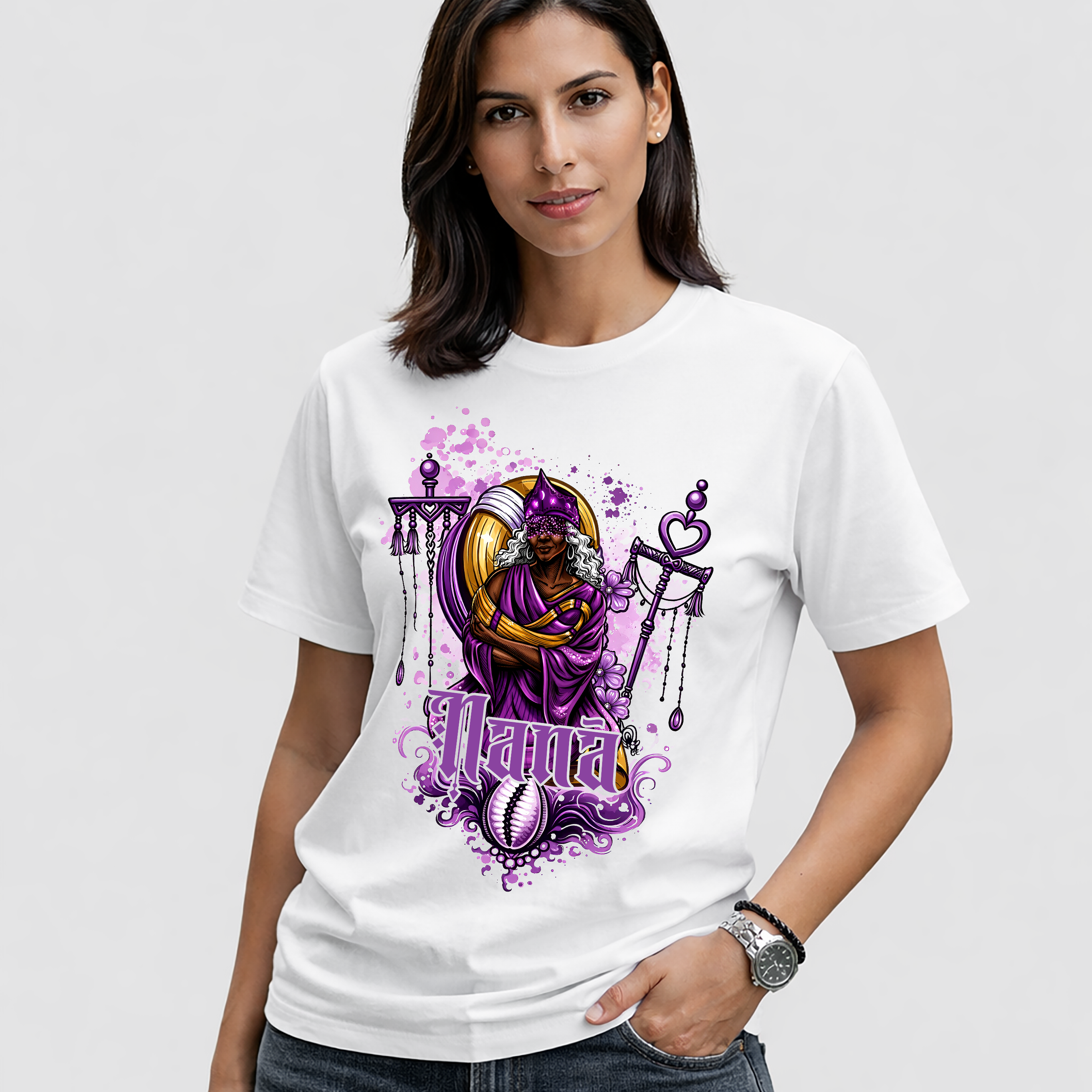 Nanã representa a força das águas paradas, da lama primordial e da ancestralidade mais antiga. Senhora do tempo, da vida e da morte, sua energia traz introspecção, respeito e conexão com as raízes mais profundas do ser.
